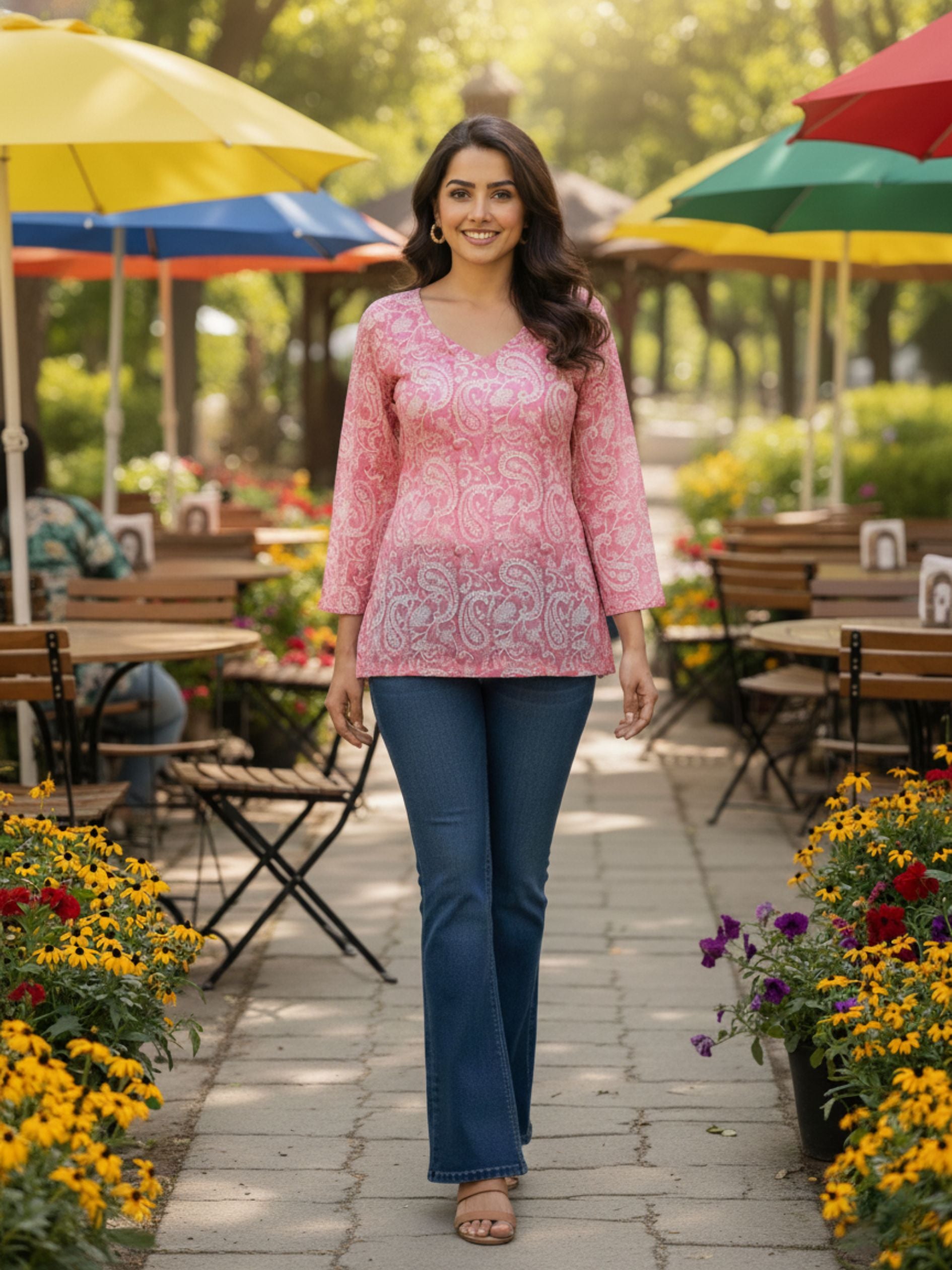 Pink Hand Block Short Kurti – Pure Cotton Comfort with a Timeless Twist
