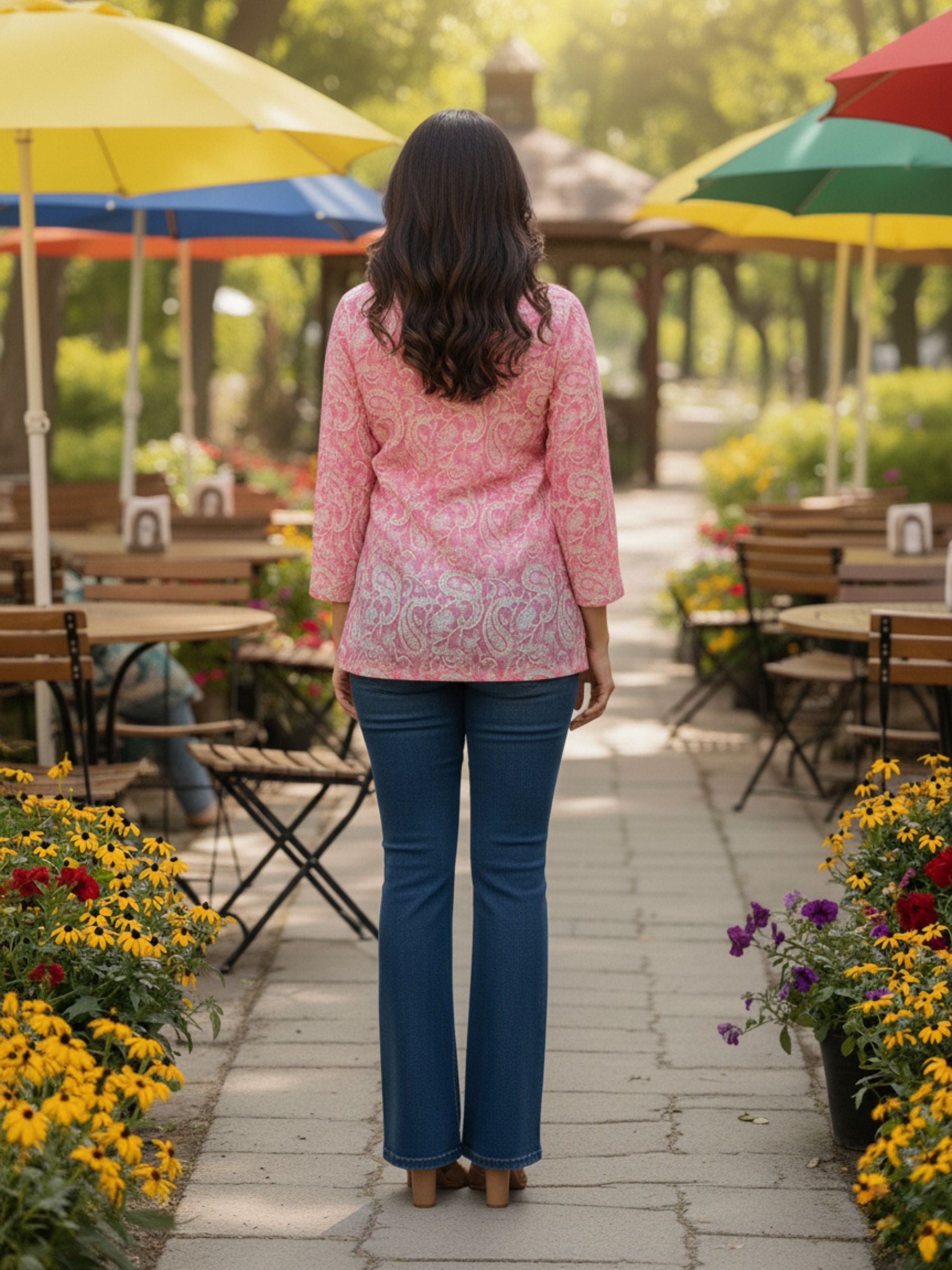 Meet your new everyday favorite — a beautifully handcrafted short kurti that blends age-old artistry with modern charm. Featuring authentic hand block printed paisley motifs on a soothing pink base, this kurti is a tribute to India’s vibrant textile heritage.