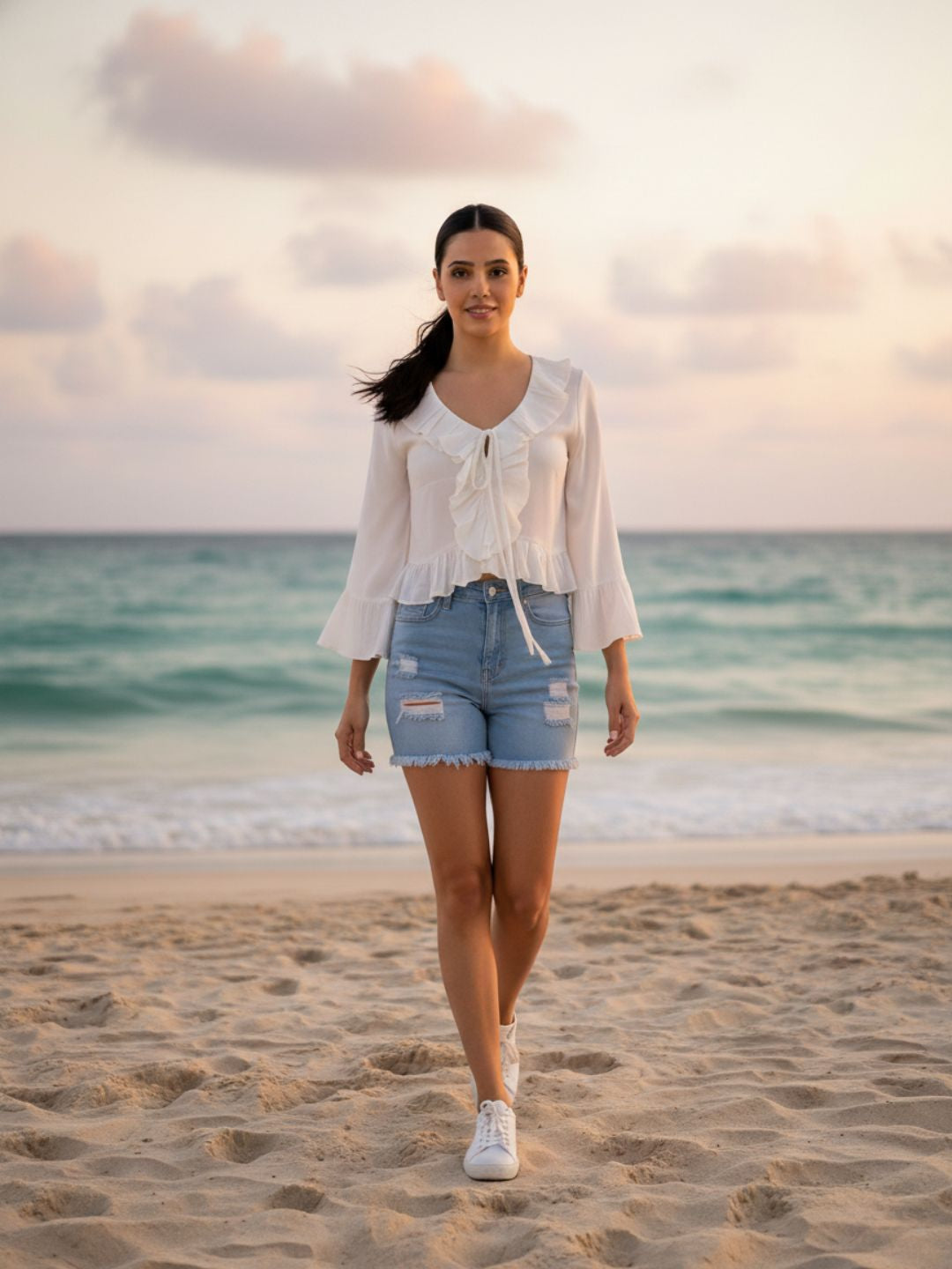 Step into sunshine-ready style with our Pure Cotton Ruffle Tie-Up Top, your new go-to piece for everything from day outings to beach escapes. Designed in soft, breathable cotton, it drapes beautifully, keeps you cool, and adds a touch of playful charm to any look.